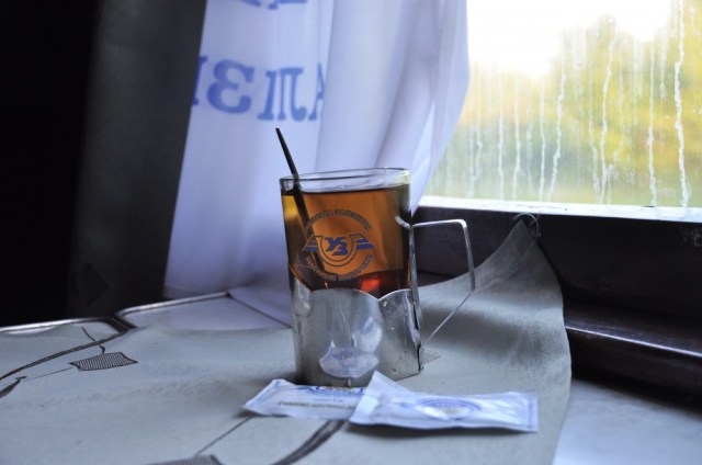 Šimon, der sich ebenfalls für den Betriebsablauf auf dem Bahnhof interessierte, brachte mich noch bis zum Bahnsteig. Dieser war 20 Minuten vor Abfahrt bereits gut gefüllt, da der Nachtzug gerade eingefahren war. Am Eingang eines jeden Wagens des 15-Wagen-langen Zugs stand eine Provodnica, eine meist junge, hübsche Schlafwagenschaffnerin, welche die Tickets der Zusteigenden kontrolliert. Fünf Minuten vor Abfahrt kam die Ansage zur Aufforderung, einzusteigen und dann ging das Vergnügen los – endlich mal wieder eine Nachtzugfahrt im Osten! Bahnfahren in der ehemaligen Sowjetunion kann man eigentlich kaum in Worte fassen, man muss es einfach erlebt haben. Ja, hier ist die Welt noch in Ordnung, hier hat die Bahn noch einen Stellenwert. Als ich mein Vierer-Kupeyni-Abteil betrat, lagen meine drei Mitreisenden schon flach. Nach einer kurzen Begrüßung wird normalerweise auch gleich das Bett gemacht, denn Ordnung muss sein. Wenig später kommt die Provodnica, sammelt die Tickets ein und schaut, ob alles seinen Gang läuft. Wenn man Glück hat, wird einem sogar noch ein Čaj serviert, sonst holt man ihn am Eingang neben dem Samowar, dem kohlebefeuerten Ofen zur Teezubereitung, selbst ab.